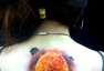 哇图网>背部纹身图片>太阳纹身图片:背部彩色太阳纹身图片纹身作品