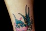 哇图网>腿部纹身图片>女孩子腿部一幅彩色小燕子纹身图片