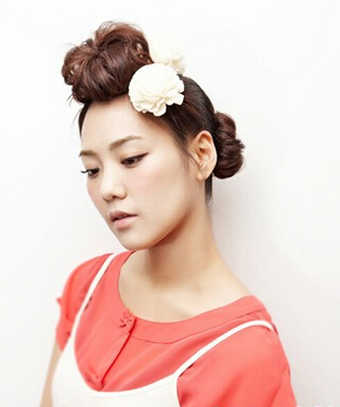 齐刘海蓬松丸子头的扎法图解[6P]