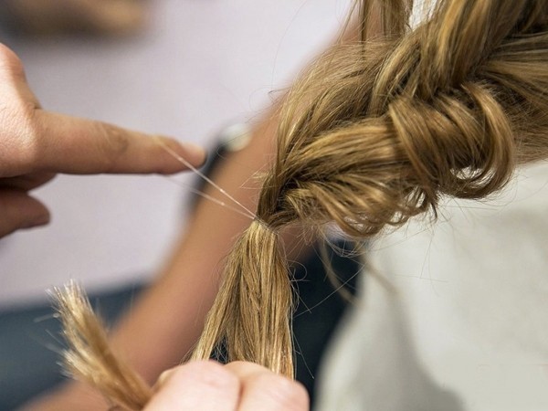 点击大图看下一张:12、完成后,从两侧拉过一些头发在你的耳后,固定在辫子上方。