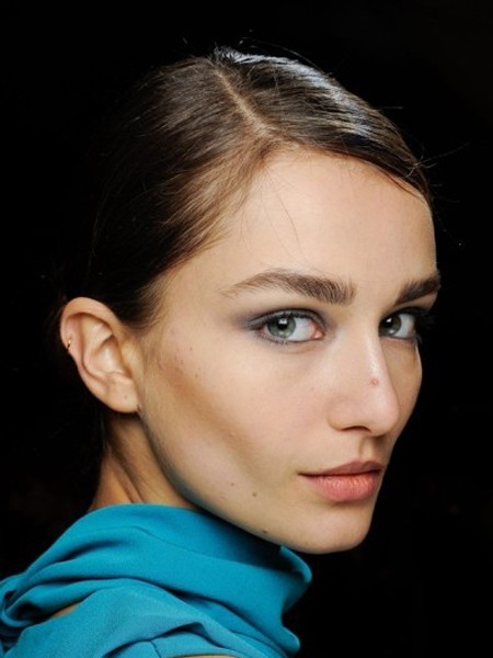 点击大图看下一张:这款棕黑色的发型随性自然,三分劈开的发顶很经典。