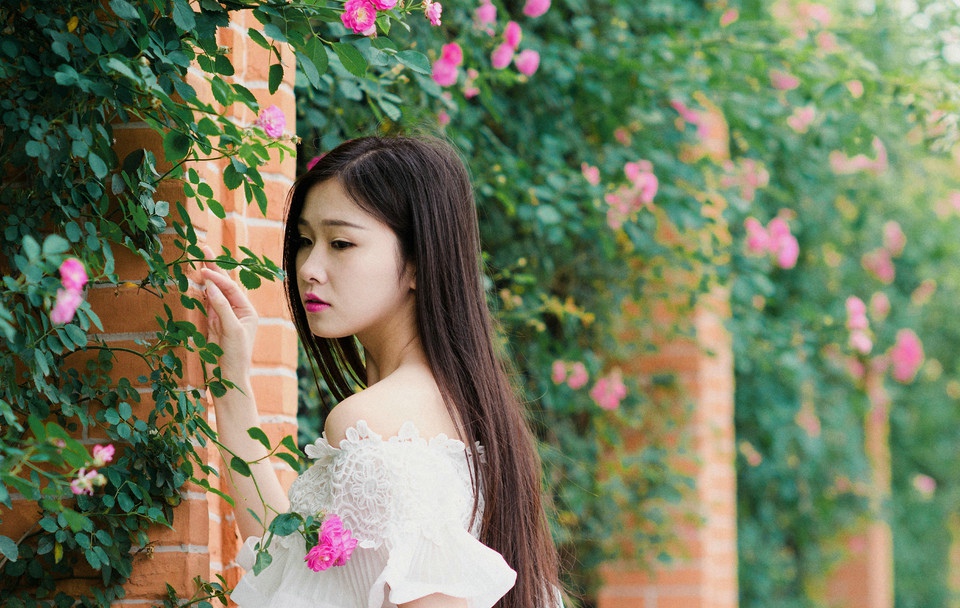 蔷薇花下温婉的长发女子(7)