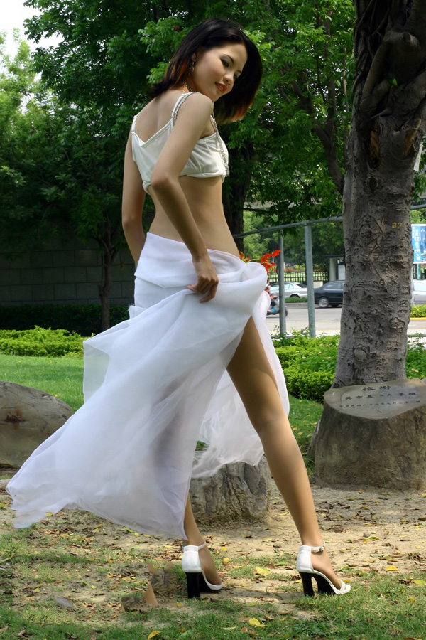 哇图网>beautyleg美女图片>性感Sugar美腿白纱户外写真