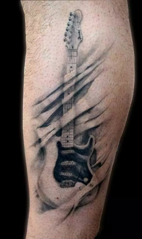 哇图网>吉他纹身图片>音乐爱好者最爱的乐器纹身