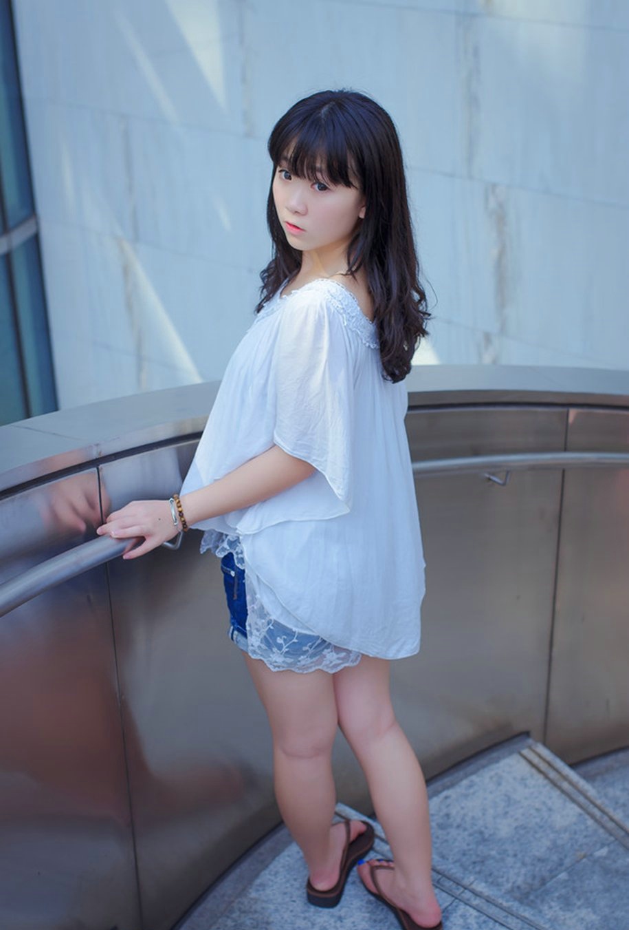 白皙甜美的婴儿肥少女热裤户外清新动人