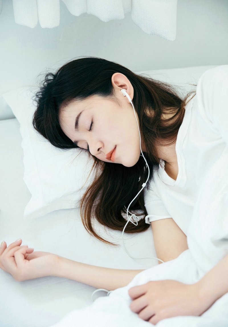 哇图网>素颜美女图片>素颜女神纯白私房慵懒悠闲音乐时光