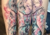 哇图网>几何纹身图片>手臂上彩色梅花鹿头纹身星空纹身图片