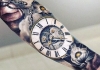 哇图网>几何纹身图片>一组多元化纹身圆形古董怀表纹身图案
