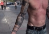 哇图网>人物纹身图片>一组关于纽约城市和人物的黑白灰风格点刺纹身图案