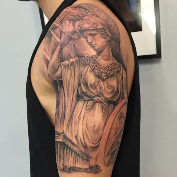 哇图网>人物纹身图片>多款黑灰素描点刺技巧创意经典传统希腊人物纹身图案