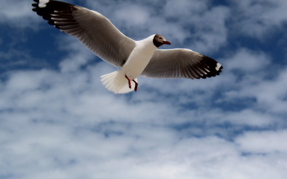 海边蓝天下飞翔海鸥图片壁纸(11)