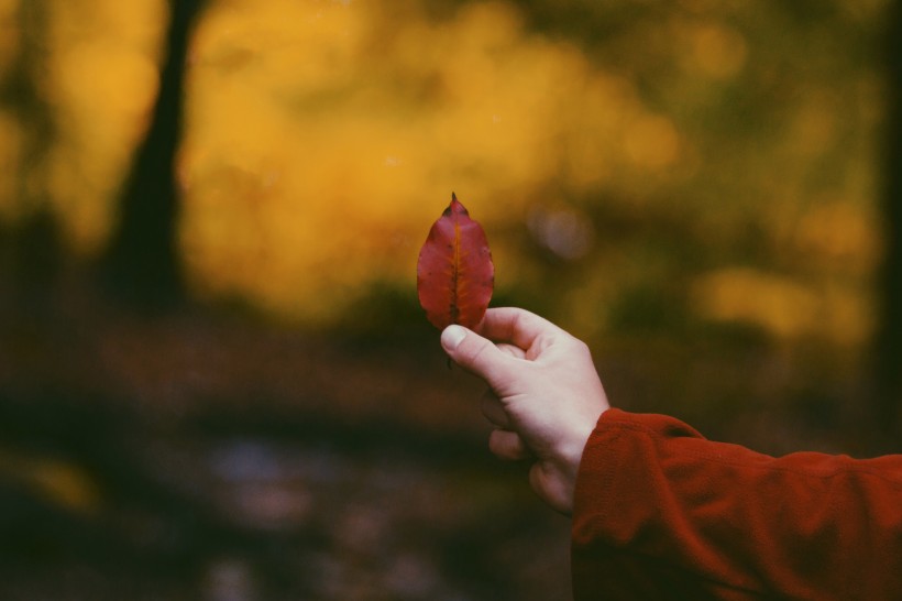 手拿落叶的人物图片_13张(7)
