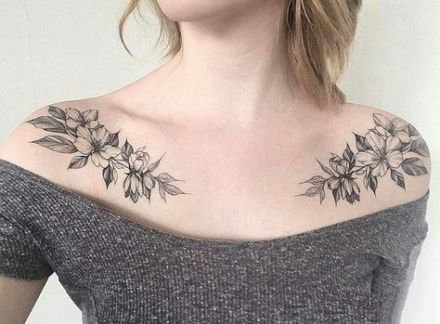 哇图网>肩部纹身图片>适合女生锁骨到肩部的唯美纹身图案18张