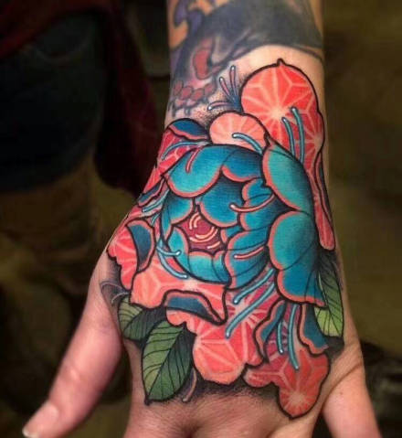 哇图网>牡丹纹身图片>精美newschool炫彩色牡丹等花朵纹身图案