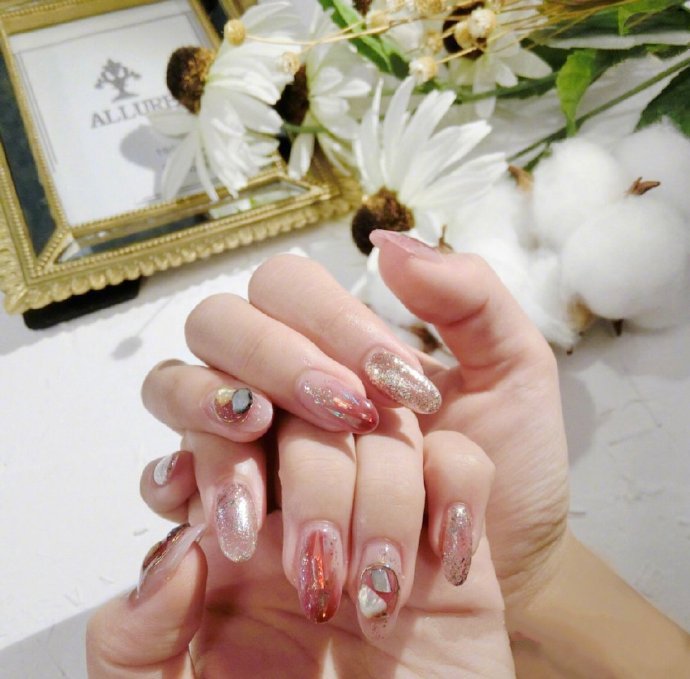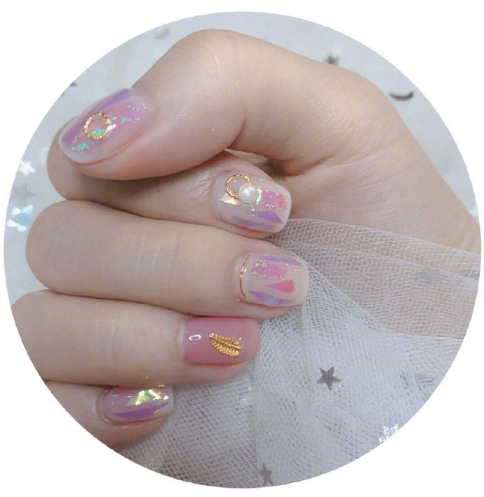 哇图网>气质美甲图片>可日常可华丽又甜又气质的玻璃纸美甲图片