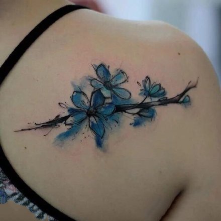 哇图网>花朵纹身图片>18组小清新的水彩色花朵纹身作品