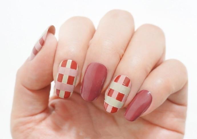 哇图网>格子美甲图片>DIY温柔红豆沙格子美甲图片欣赏