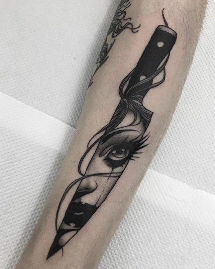 哇图网>黑灰纹身图片>小臂黑纹身 黑色的13张手臂点刺黑图纹身作品