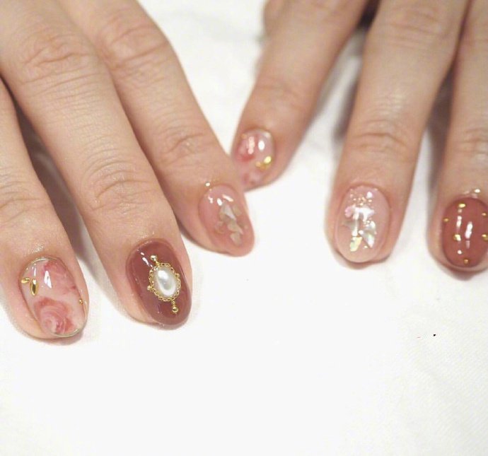 亮闪闪的秋季暖色系美甲款图片(7)