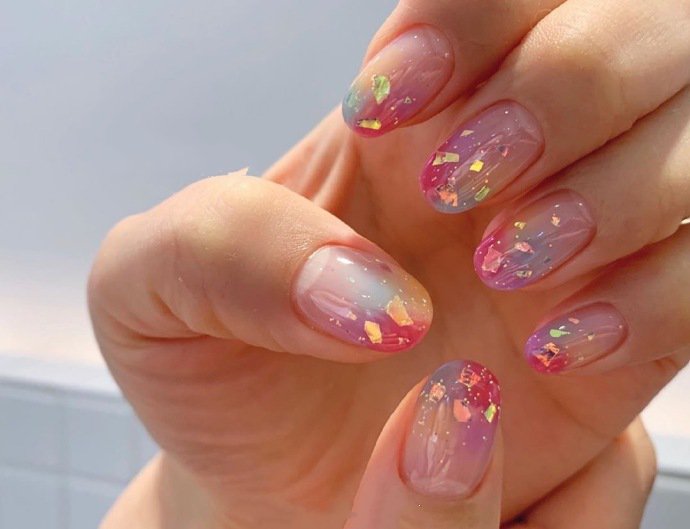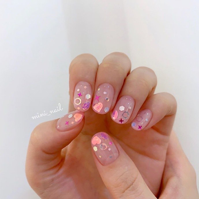 哇图网>夏天美甲图片>一组blingbling的亮片夏日美甲