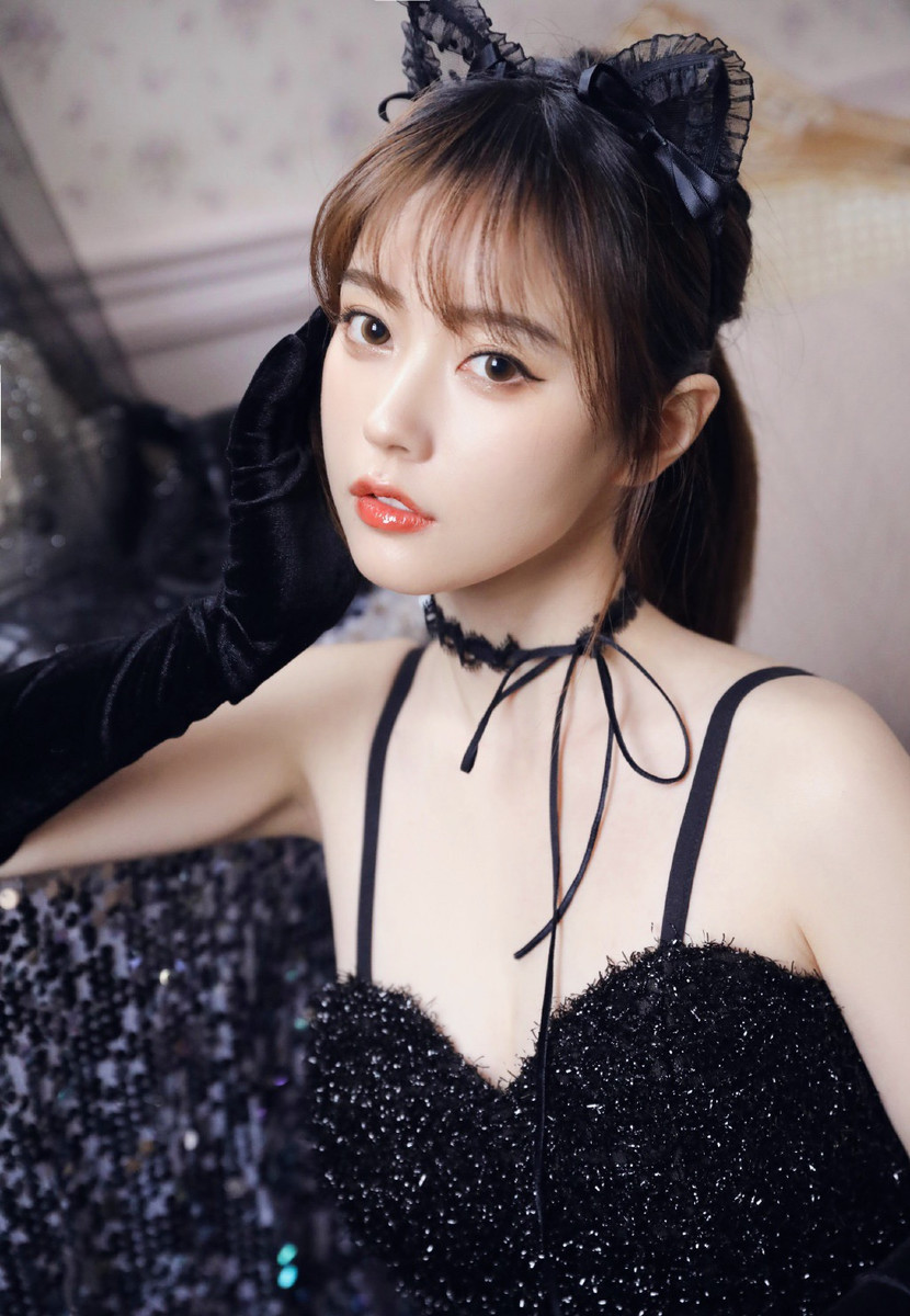 哇图网>写真摄影图片>暗黑系美女吊带黑裙性感撩人写真