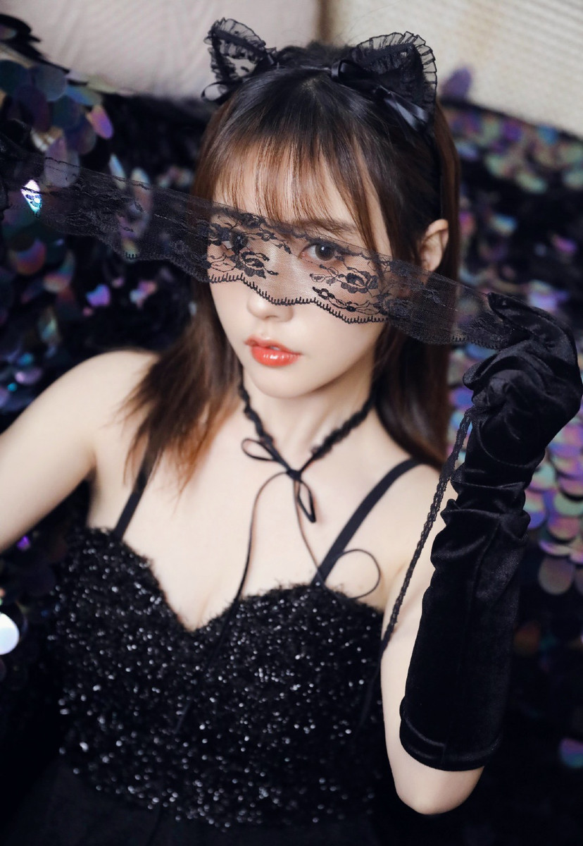 暗黑系美女吊带黑裙性感撩人写真