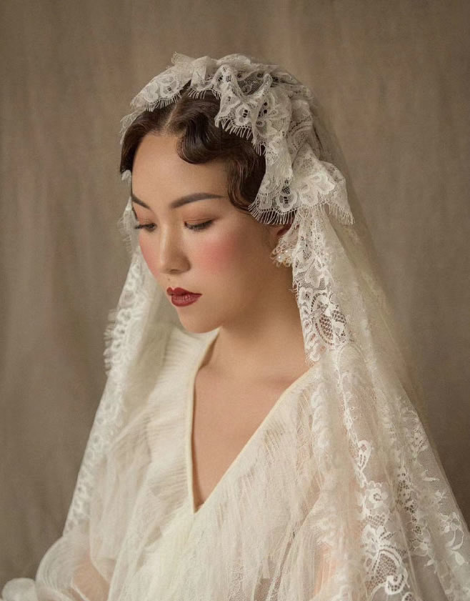 点击大图看下一张:手推波纹发型与复古服饰搭配,温柔如水