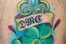 哇图网>腿部纹身图片>腿部彩色四叶草钥匙纹身图片