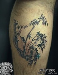 哇图网>腿部纹身图片>腿部一幅黑灰竹子纹身图片