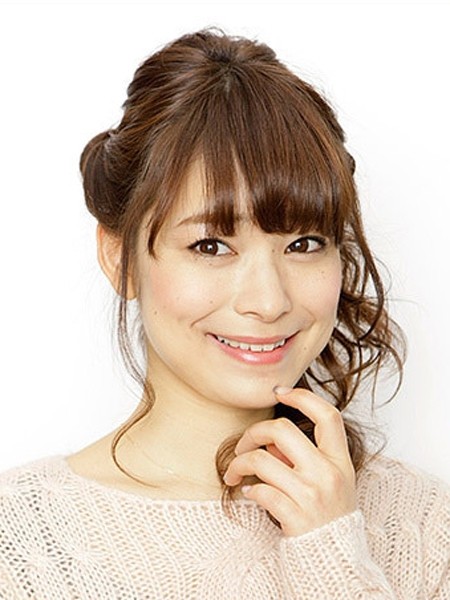 点击大图看下一张:长刘海遮盖住整个额头打造出修颜气质。公主头半扎发露出耳朵,展现出甜美气质。