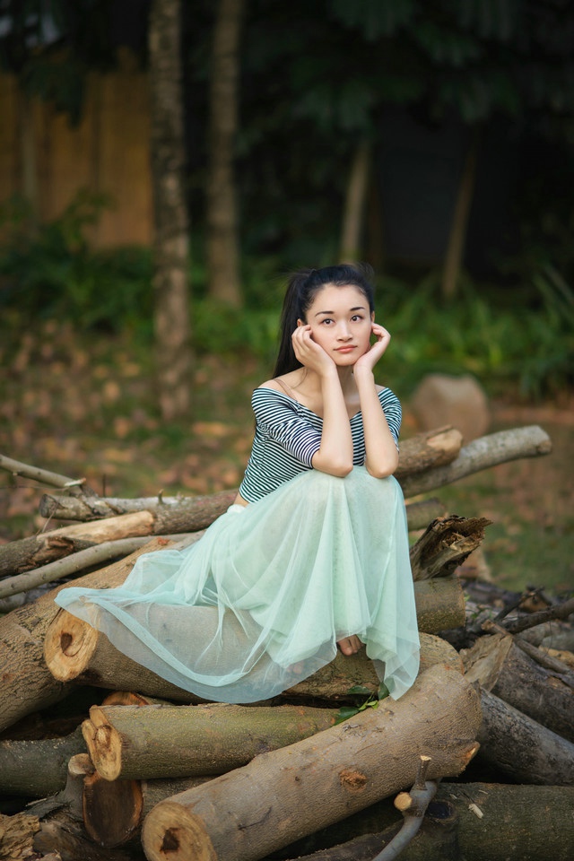 哇图网>优雅美女图片>文艺清新女生森林优雅写真