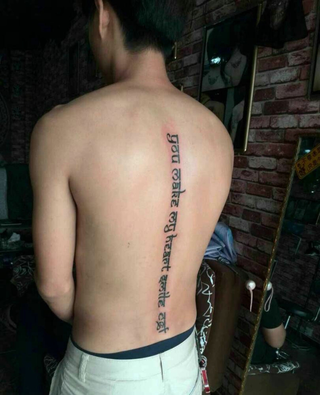 哇图网>男生纹身图片>男生背部上一串梵文精美刺青