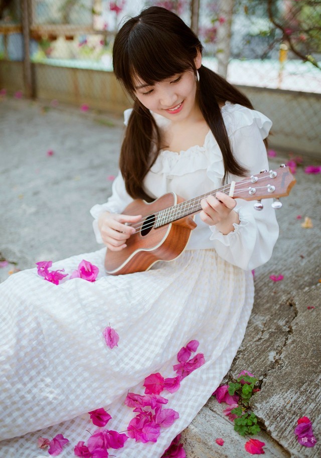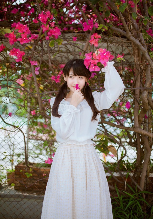 哇图网>甜美美女图片>甜美可人的白色连衣裙少女与花朵的唯美邂逅