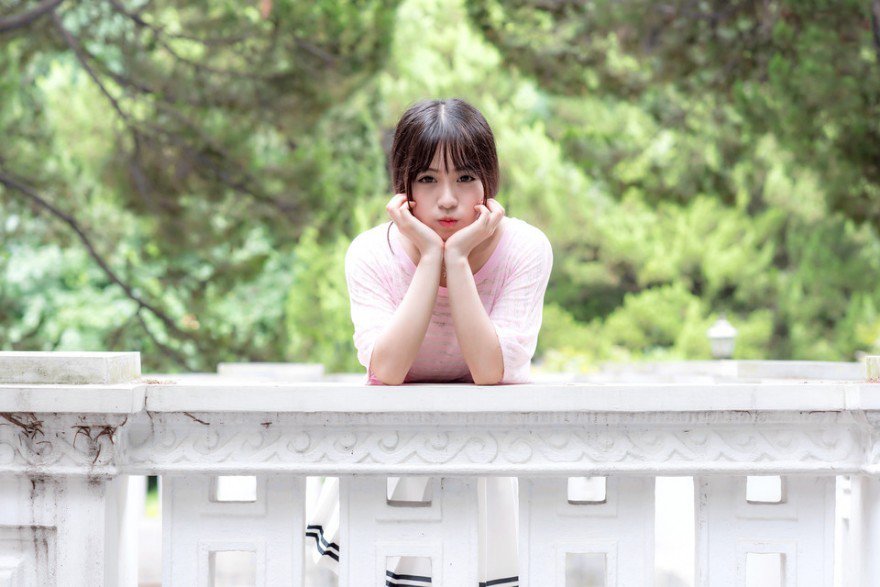 哇图网>清纯美女图片>粉色美裙少女清纯可爱公园休闲写真