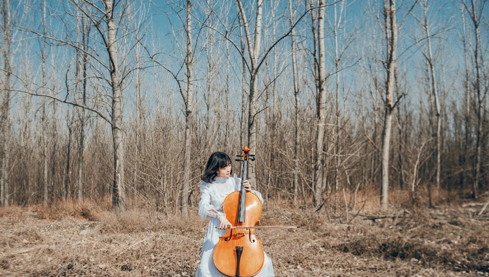哇图网>短发美女图片>短发素颜美女自然中与大提琴合奏