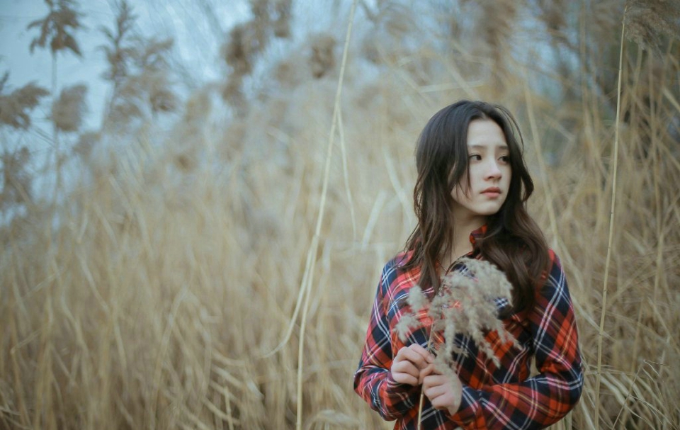格子衬衫卷发美女秋季荒野中文艺养眼(7)