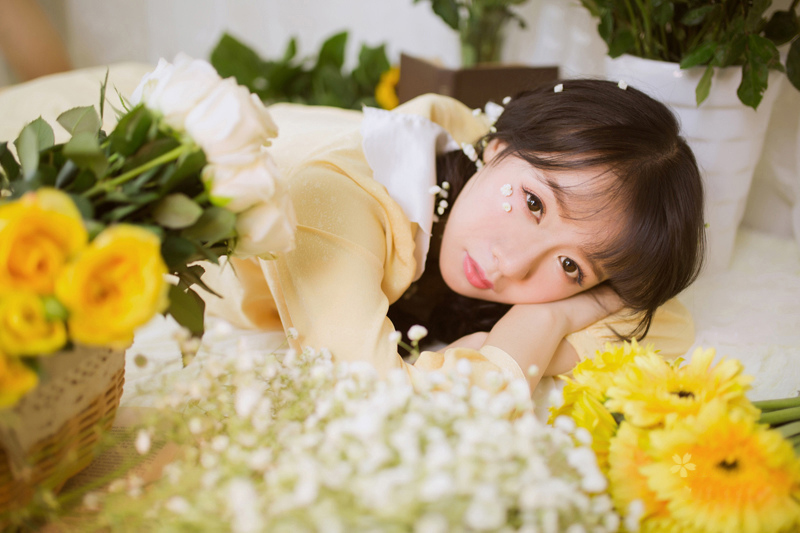 哇图网>甜美美女图片>甜美少女与花作伴私房唯美写真