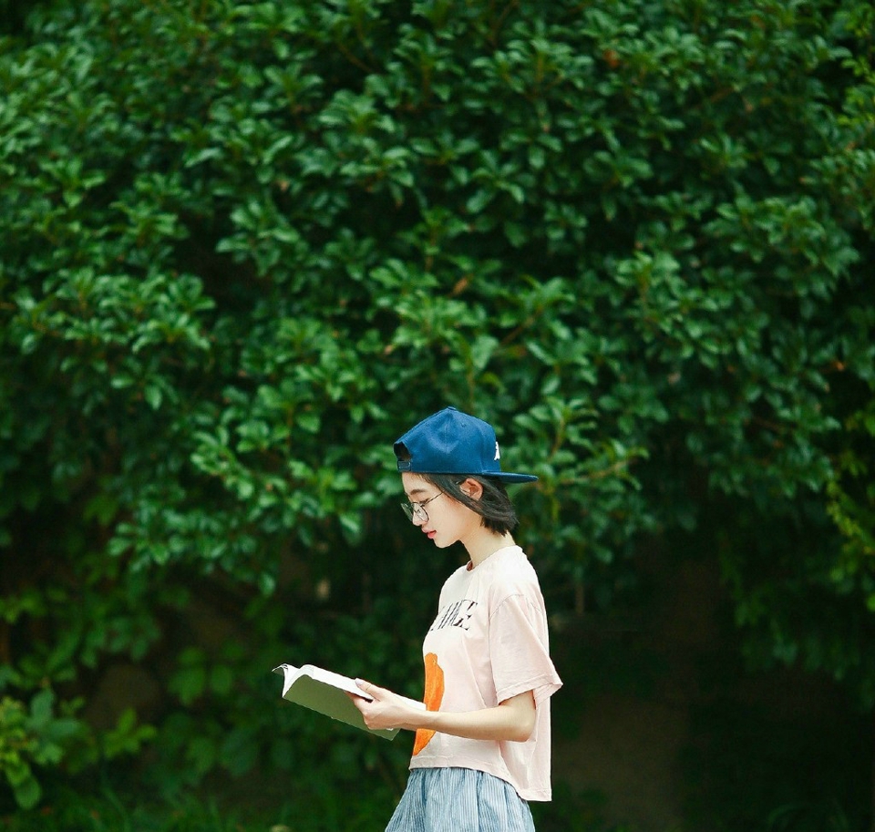 哇图网>眼镜美女图片>眼镜少女粉嫩T恤清新绿色怡人