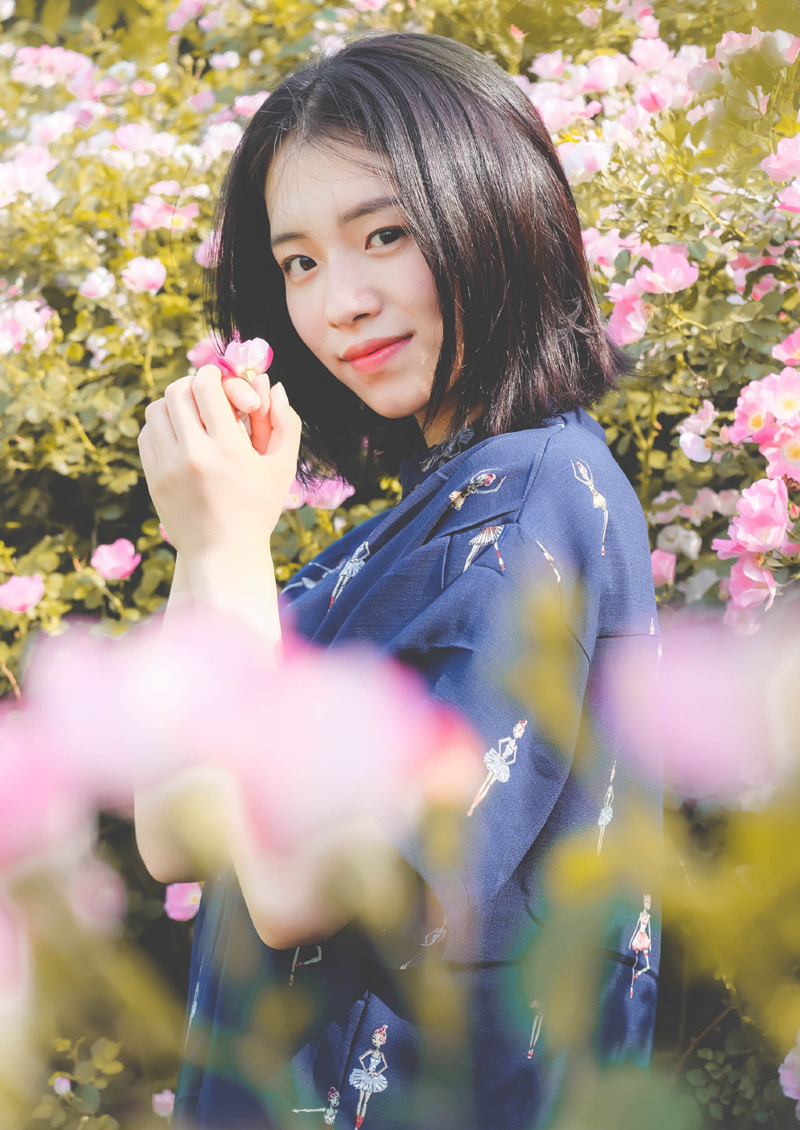 哇图网>率性美女图片>率性美女花丛唯美写真争相斗艳