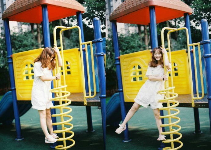 哇图网>清新美女图片>清新女生滑梯甜美写真娇俏可人