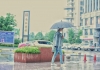 刘源雨中街拍撑伞漫步 清新暖萌范儿十足