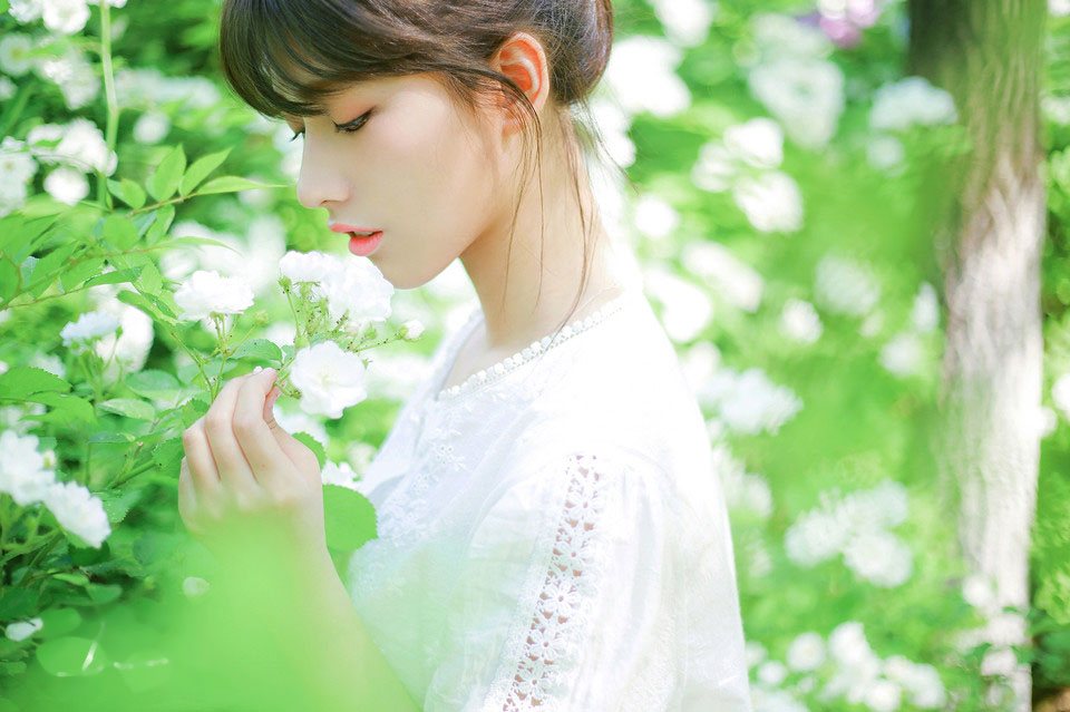 哇图网>清新美女图片>蔷薇花中的超美清新小美女温馨阳光活力四射