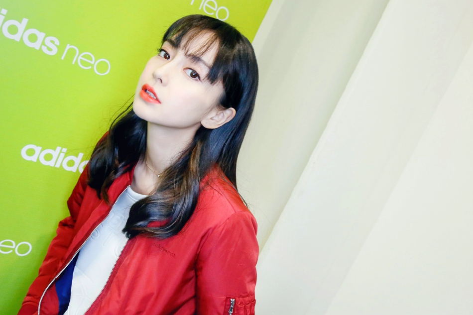 点击大图看下一张:Angelababy齐刘海红唇美艳动人