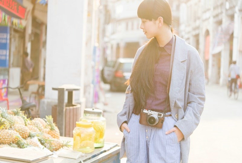 哇图网>清新美女图片>大眼小清新女生复古风格阳光迷人写真