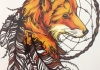 哇图网>动物纹身图片>漂亮的狐狸和捕梦网纹身图案手稿素材