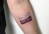 哇图网>手臂纹身图片>男性手臂上瑞典的日落纹身风景图片