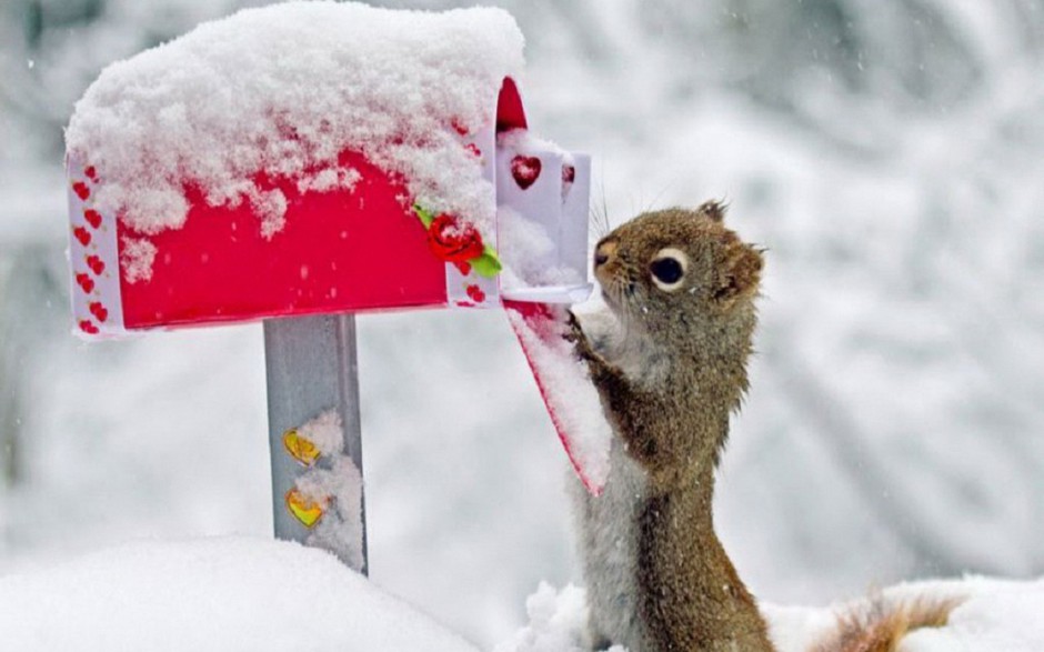 哇图网>松鼠图片>可爱的松鼠雪地嬉戏图片