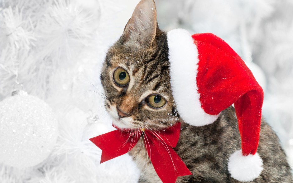 哇图网>猫图片>可爱猫咪圣诞节主题壁纸