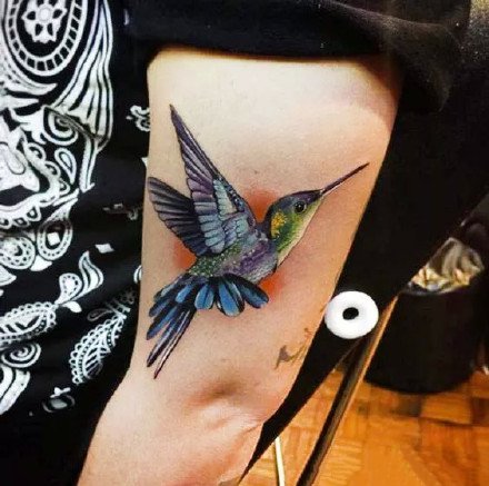 哇图网>鸟纹身图片>蜂鸟纹身图案-9张彩色的蜂鸟纹身图片