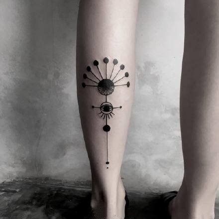 手臂等部位简约又好看的点刺黑灰纹身图案(7)
